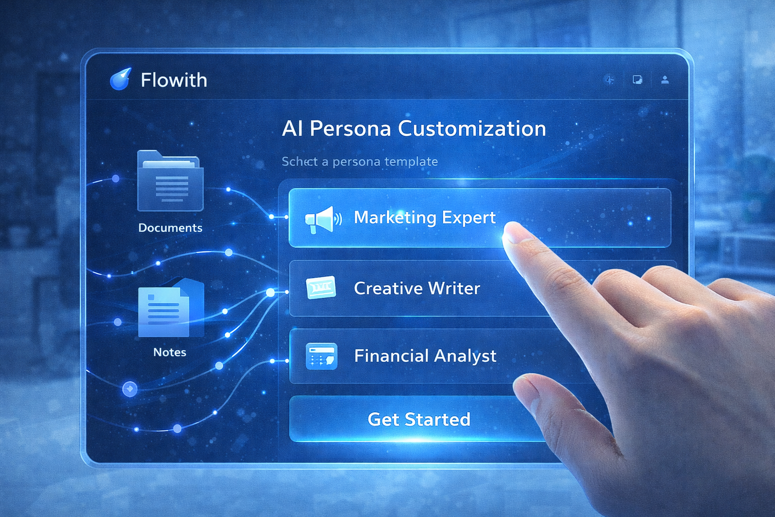 3. 페르소나와 지식 기반 학습으로 Flowith를 진화시키세요. 직업별 페르소나 설정 및 개인 데이터를 주입하여 더욱 강력하고 개인화된 AI 비서로 만들 수 있습니다.